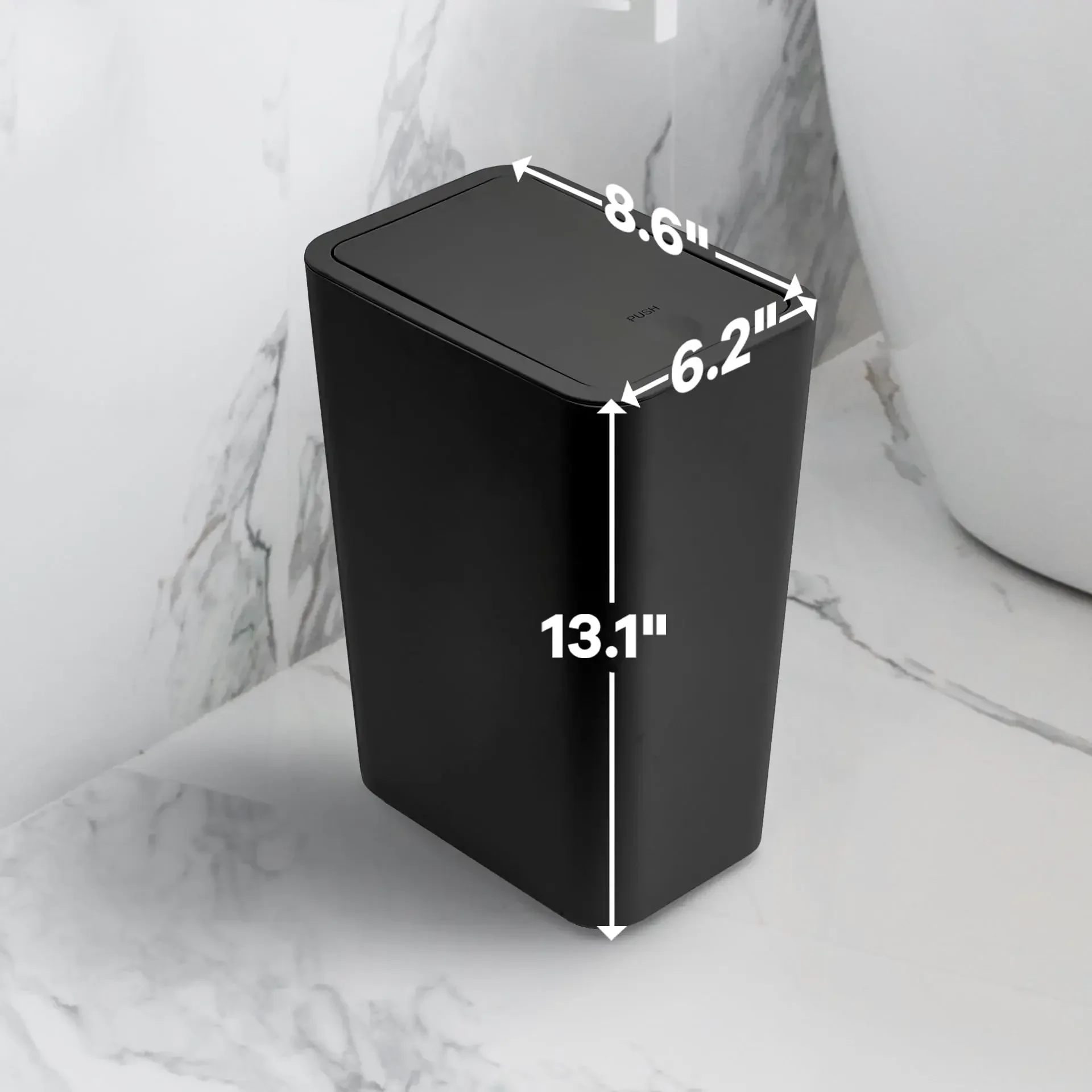 OPTIMIZE YOUR SPACE - These sleek, petite trash cans are tailored for small kitchens, cozy bedrooms, and compact bathrooms, measuring a perfect 9.4 x 6.3 x 11.6 inches.