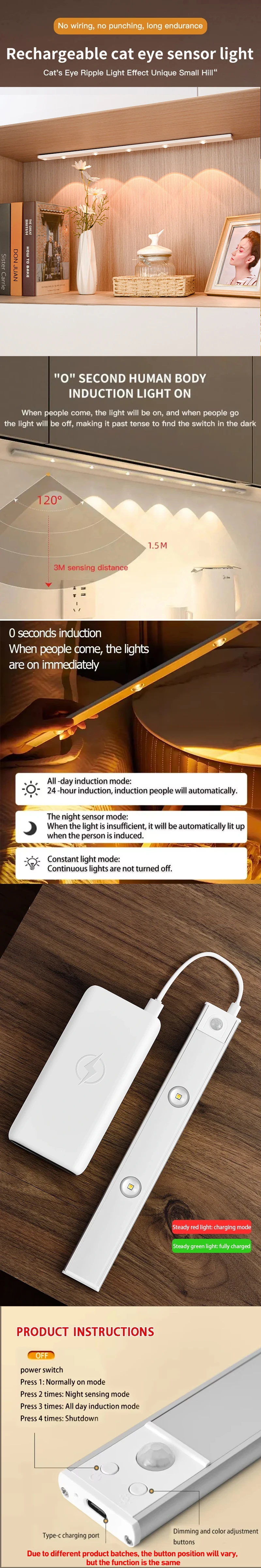 ▼Motion Sensor Feature. Walk in & Auto Light Up.No more running into furniture or places in the dark: Lights will be auto turn on by motion activated within 3m/120° in the dark or in the dimmer surroundings,then auto turn off after 25 seconds to save battery life.