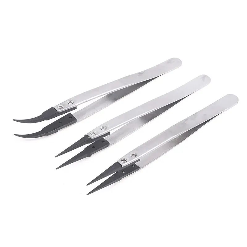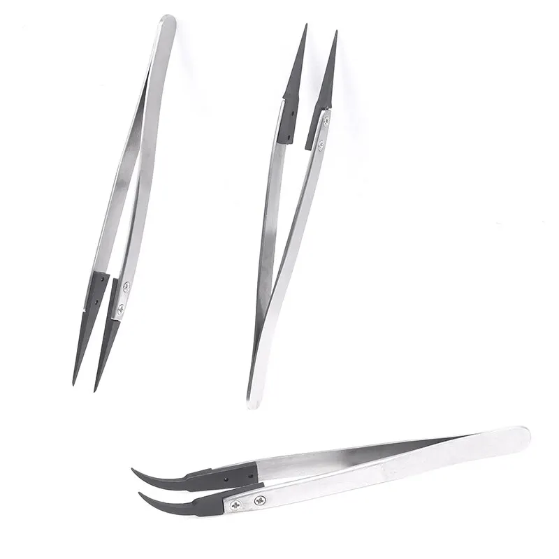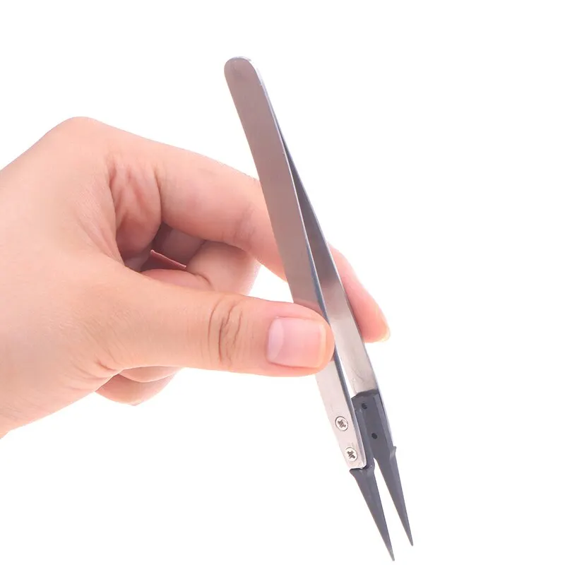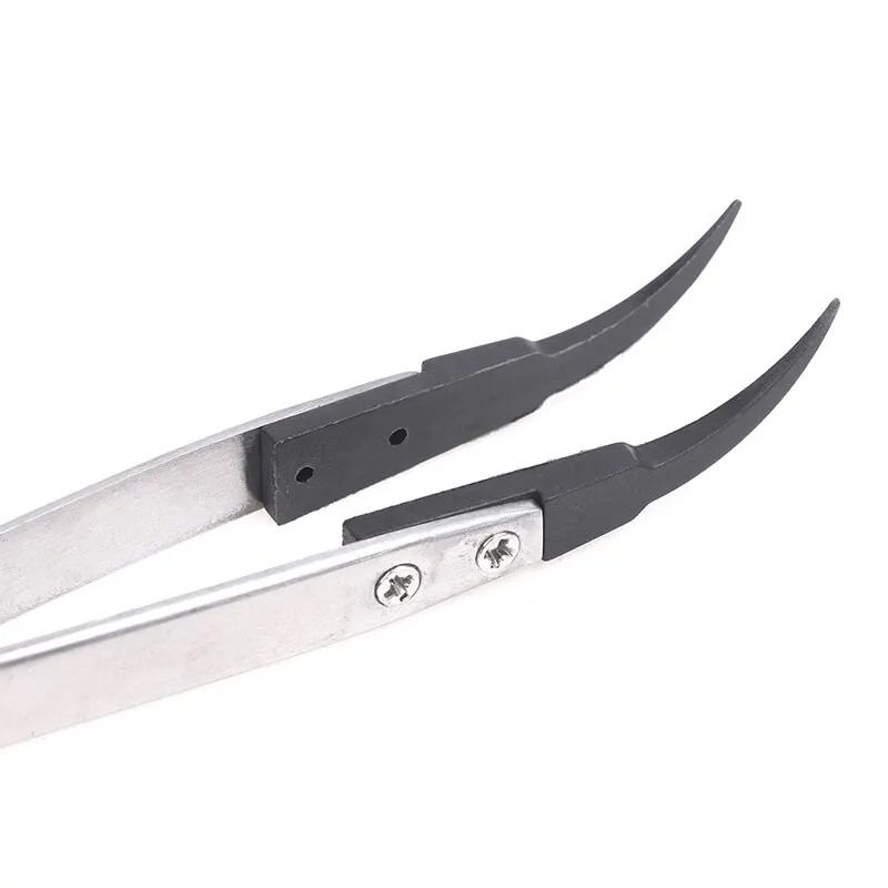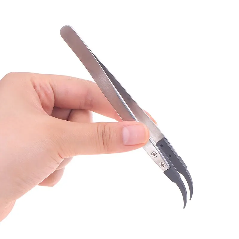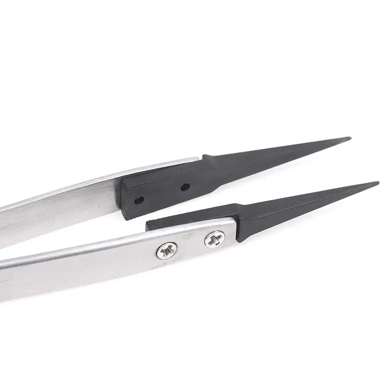 The plastic head of the interchangeable head tweezers has excellent anti-static performance due to the filling of carbon fiber, which increases the hardness and wear resistance of the interchangeable head tweezers. It is lightweight and effective in discharging charges, and will not experience precipitation.